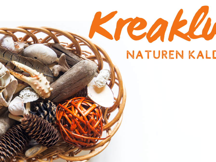 Vi finder Kreaklubbens store samling af naturmaterialer med bl.a. muslinger, kogler, sten og blade frem og laver dem til kranse, uro’er, malede sten, små skåle og andre dekorationer.